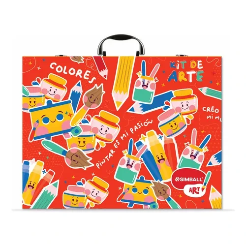 SET DE ARTE ESCOLAR DE 48 PIEZAS ROJO SIMBALL ART (20 LAPICES DE COLORES+10 MARCADORES DOBLE PUNTA+10 TEMPERAS+4 STICKERS+2 PINCELES+1 GOMA+1 SACAPUNTAS)