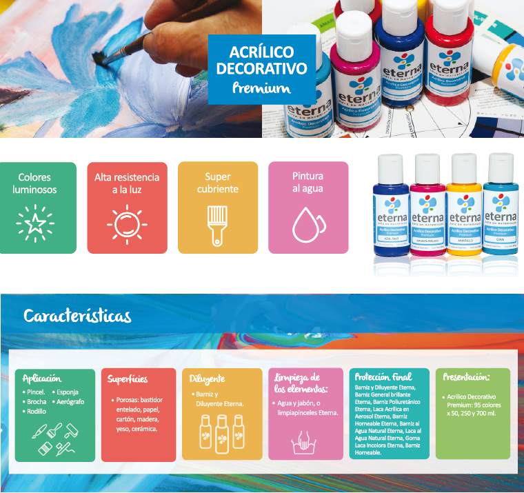 ACRILICO DECORATIVO 50cc. COLORES SURTIDOS COMUNES ETERNA